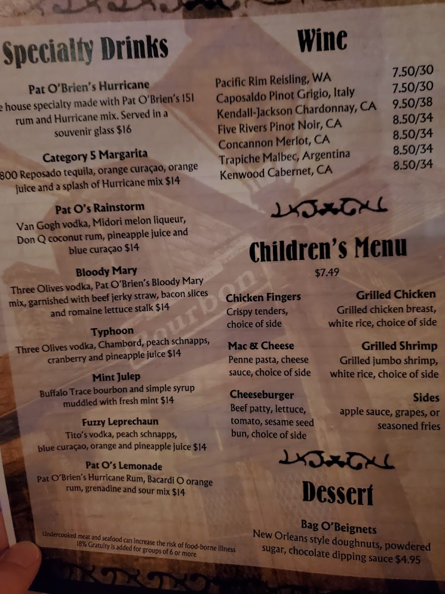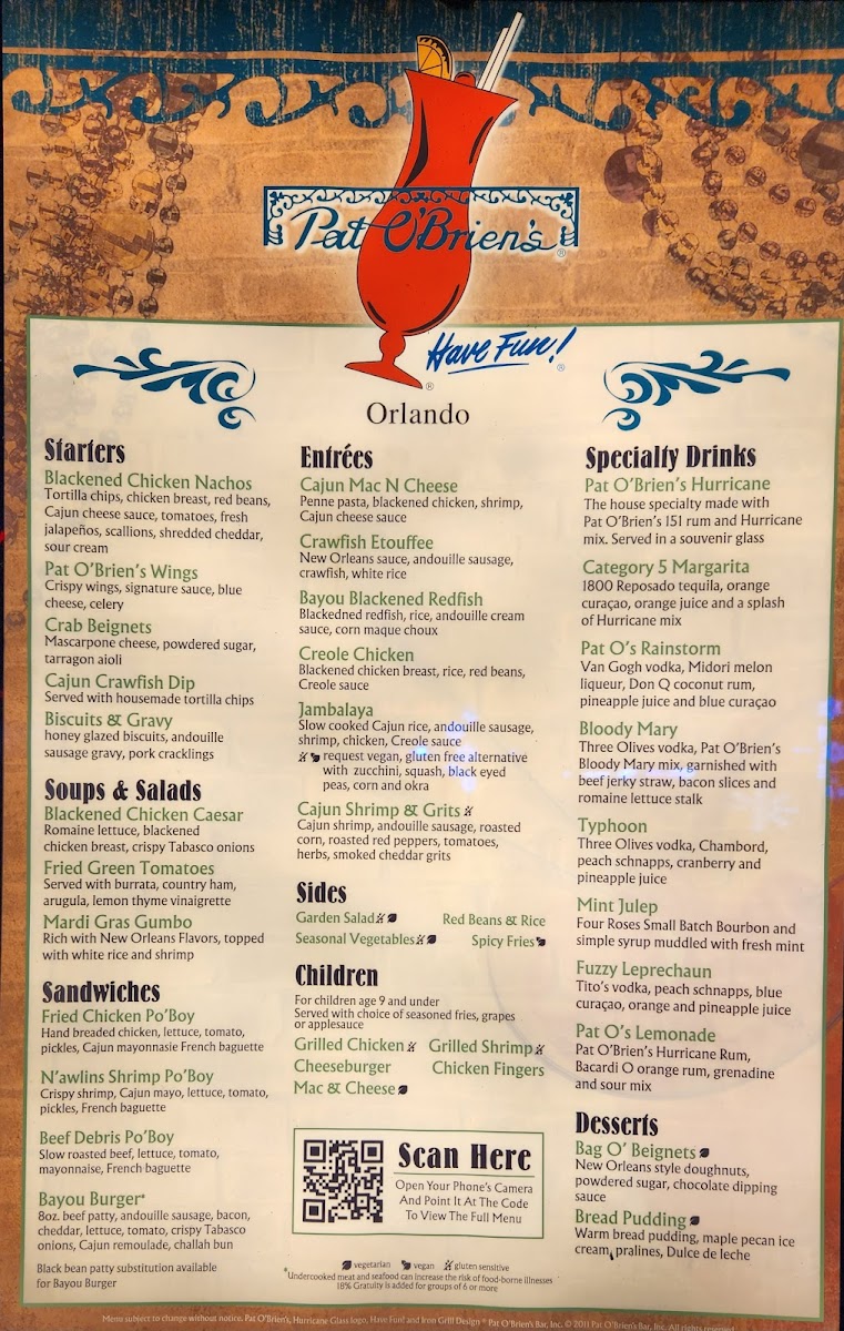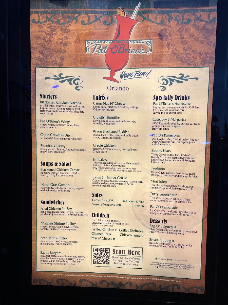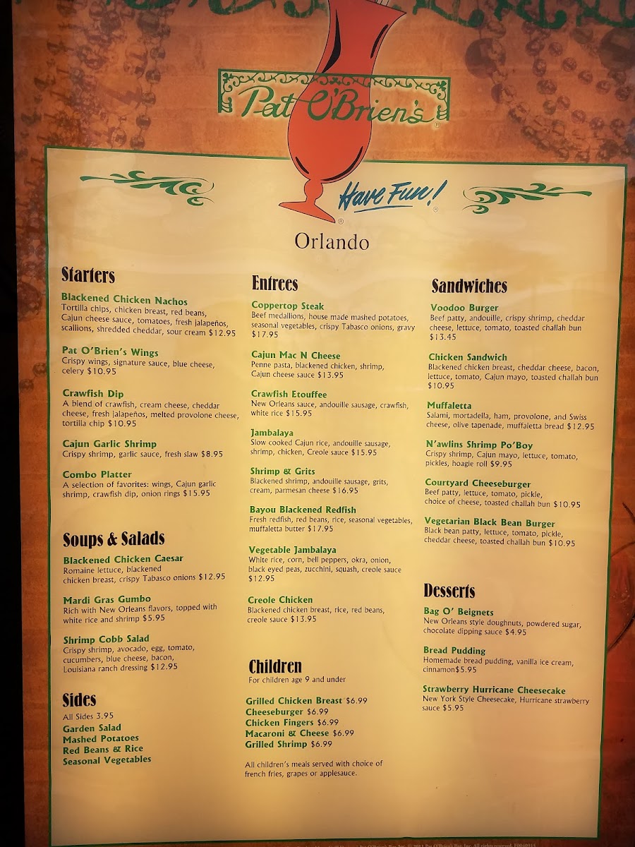 Welcome to Pat O'Brien's - Orlando, a vibrant culinary haven located at 6000 Universal Blvd, where the spirit of New Orleans serves as your guide! Dive into their menu filled with bold flavors and soulful dishes that will tantalize your taste buds.
